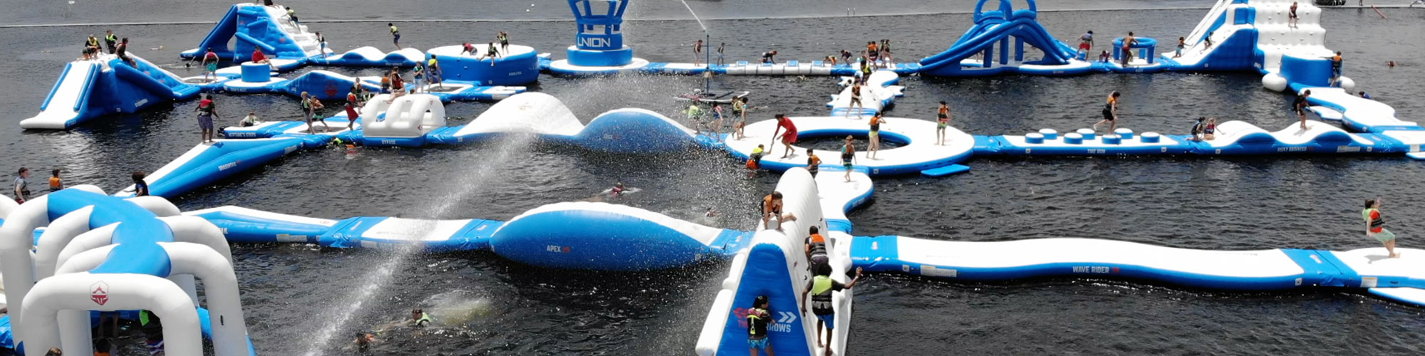 Durch das modulare System können Sie einen Parcours beliebig groß und herausfordernd gestalten. Inflatables sind leicht aneinander zu befestigen. Je nach Größe des Parcours bietet er 13 bis 250 Personen gleichzeitig eine unvergessliche Zeit auf dem Wasser.