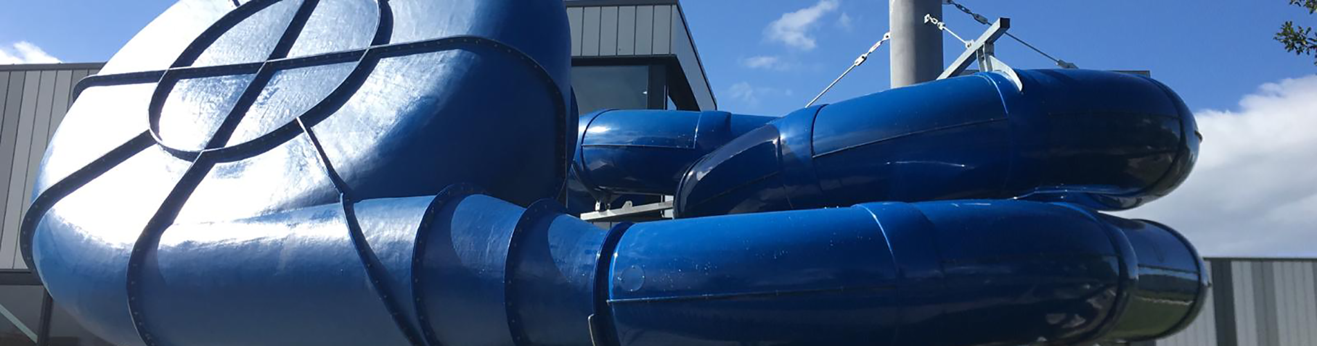 Das neue Schwimmbad verfügt über zwei Watergames & More Wasserrutschen. An der Seite des Freizeitbads befindet sich eine Familienrutsche (eine Watergames & More Waverider). Sie ist ideal für Familien, die zur gleichen Zeit hinunterrutschen möchten. Für die Abenteuerlustigen ist die Challenger mit Dazzler vorgesehen. Diese Röhrenrutsche hat einen großen Konus, ein Zeitregistrierungssystem und interaktive Multimedia.