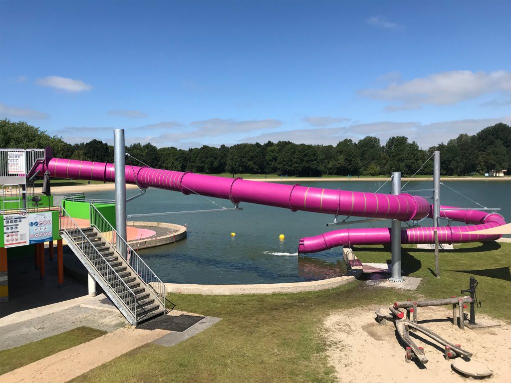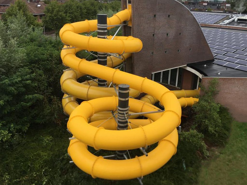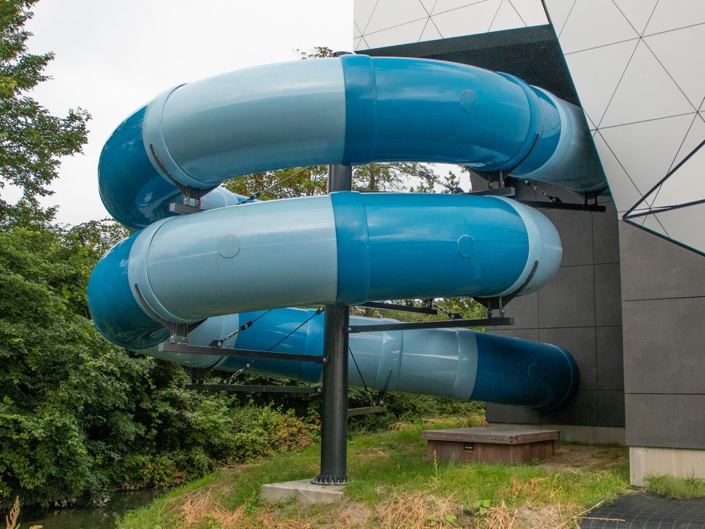 We are happy to brainstorm with you about the interpretation and appearance of your slide in order to create the best possible experience for your guests. Our water slides are also a nice addition to an existing water play structure. Our water slides are made of high-quality fibreglass-reinforced polyester. This material guarantees high quality and durability, and it is easy to maintain.