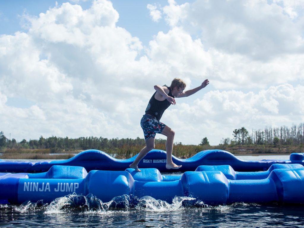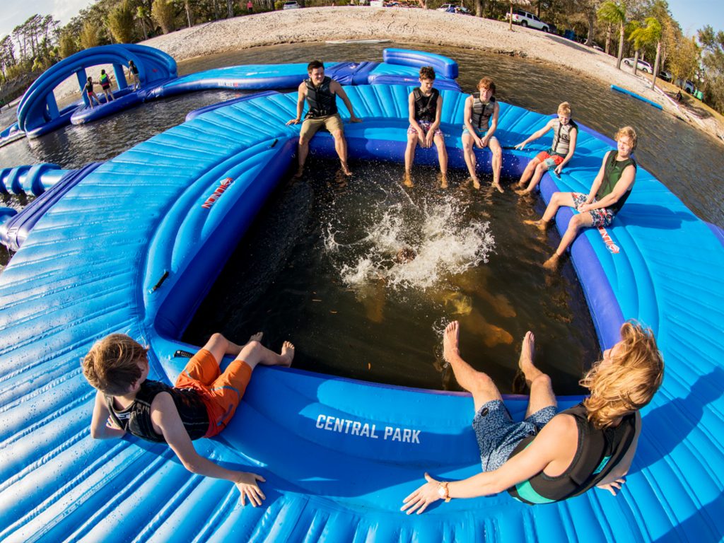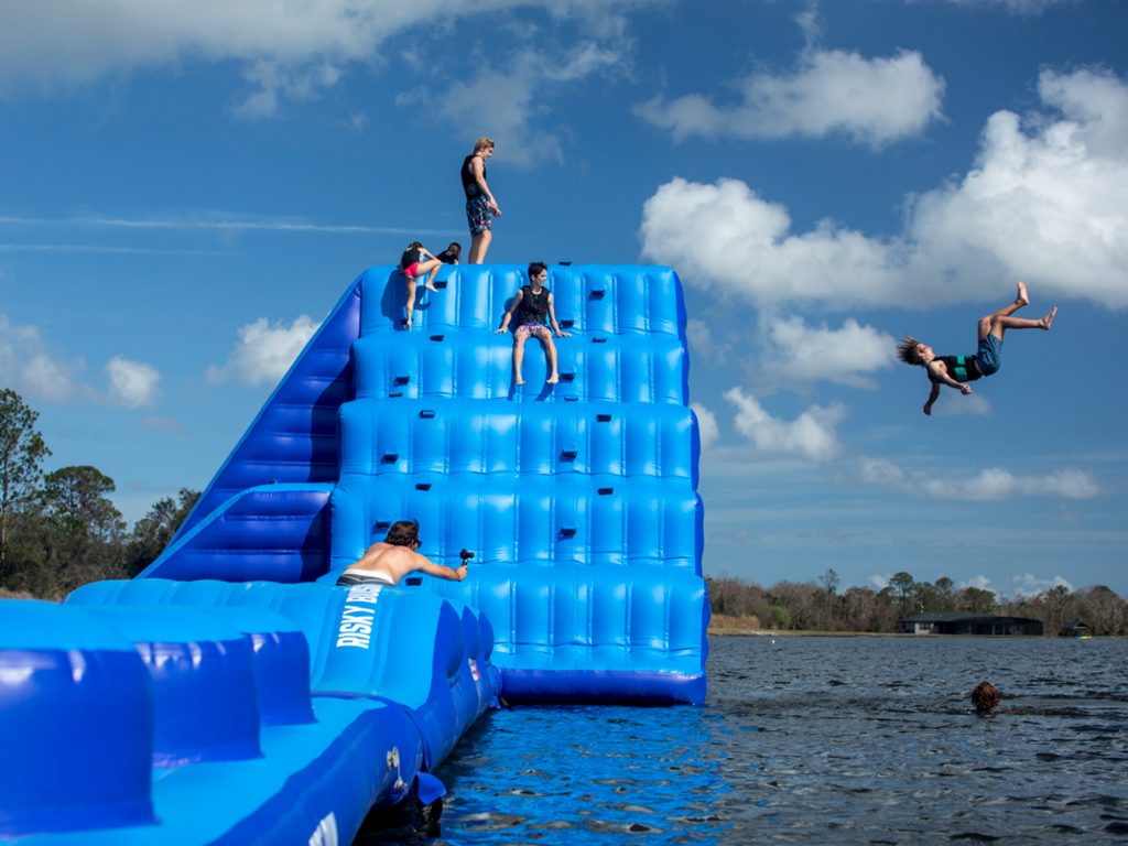 Inflatables are separate qualitative elements that together form a loop, resulting in hours of water fun, both outdoor and indoor. These elements allow a variety of features and difficulty levels to be implemented. It is easy to expand it with one or a few elements to create a bigger loop. With inflatables, you can give 30 to 250 people an unforgettable time on the water at the same time.