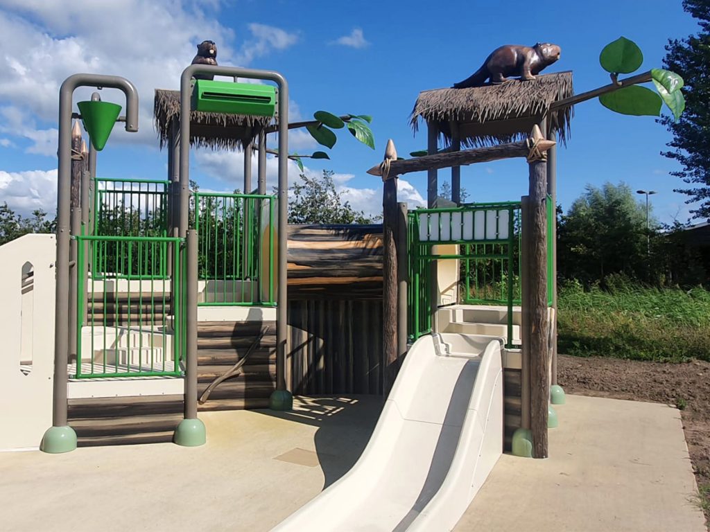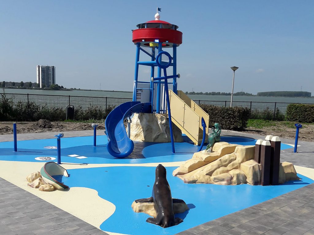 A water play structure offers a unique playing experience. The design takes into account the theme but also the play value and the stimulation of the development of children, e.g., in terms of teamwork, fantasy, physical movement, education and interaction. Quality, interactivity and a high play value are important characteristics of our unique designs.
