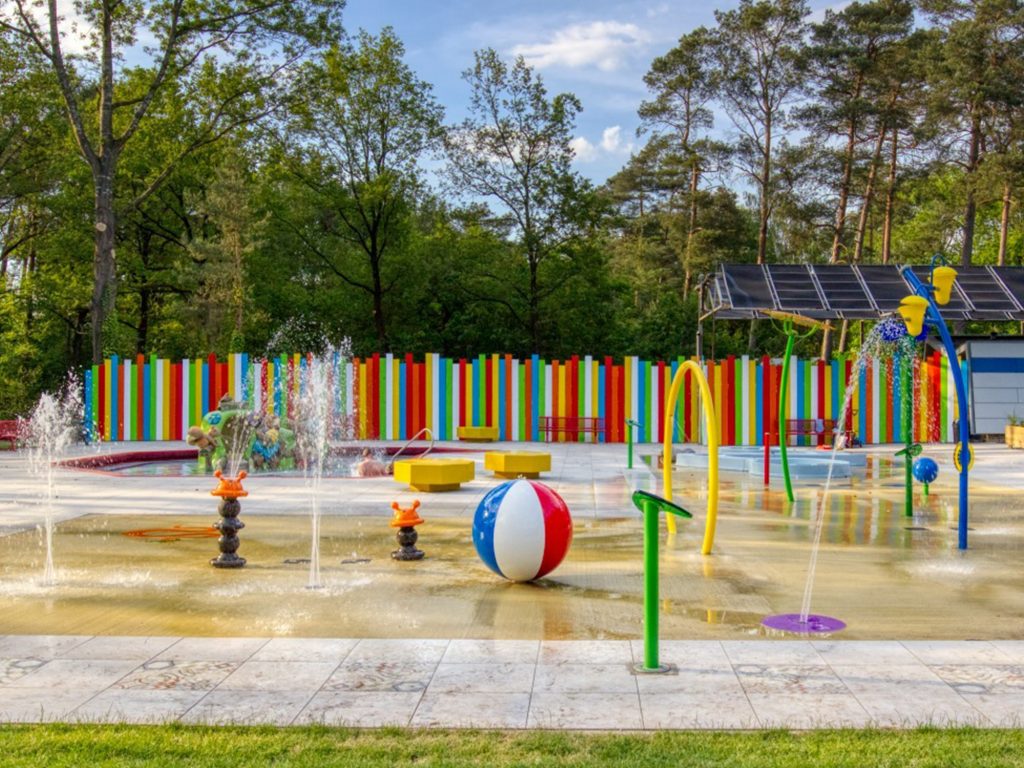 A spray park is an interactive water playground with water sprayers and fountains, suitable for young and old people alike. It is very safe because the water from the nozzles ends up on a flat floor and is drained immediately. The drained water is collected and reused, making it a sustainable water attraction.
