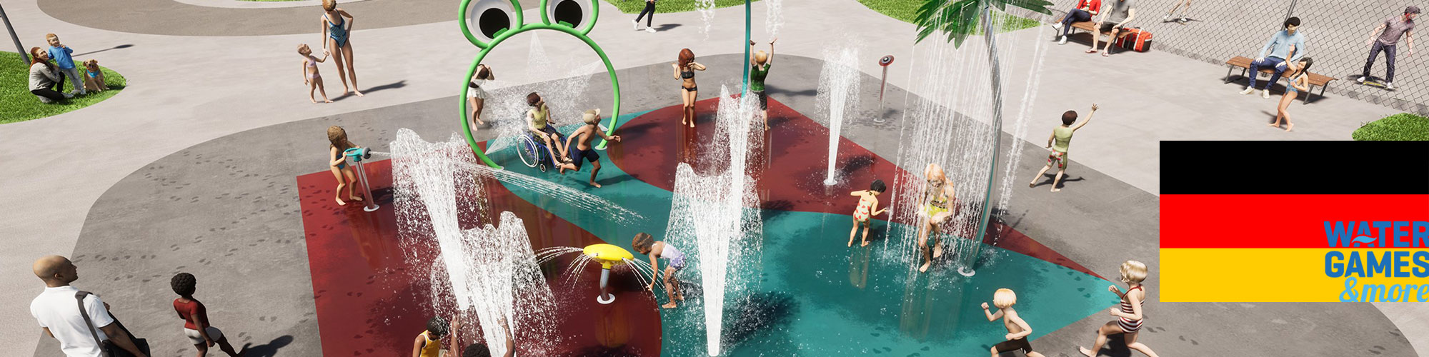 Watergames & More is to construct an outdoor Spray Park for the public swimming pool known as Freizeitbad Heveney. The Spray Park will comprise various water features, including a Sneaky Soaker (tipping bucket), a Froggie-O (frog arch) and a palm tree. To create an extra playful atmosphere, the floor is to be finished in pale blue EPDM. Shade sails are also to be fitted above the Spray Park, thus enabling carefree play even when the weather is hot. Work on the Spray Park has already commenced. It is therefore expected to be completed by early 2022. To avoid any damage during the colder months and lengthy periods of interactivity in the winter, we are to deliver the Spray Park prepared for the winter, which implies that the above-ground equipment will be delivered later.