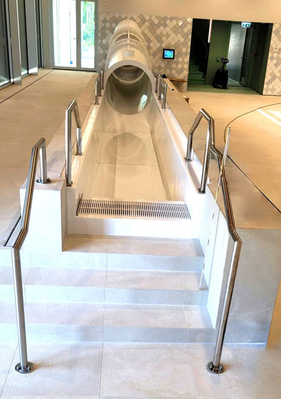 The indoor pool’s opening ceremony was a memorable event. At the beginning of June, de Koerbelt proudly opened its doors to the public! Watergames & More installed and delivered a sustainable waterslide, known as the Challenger, especially for this pool. The Challenger is a tube slide that both young and slightly older users have come to love. Starting at a height of almost 8 metres, the course of the slide extends over a distance of 71 metres.