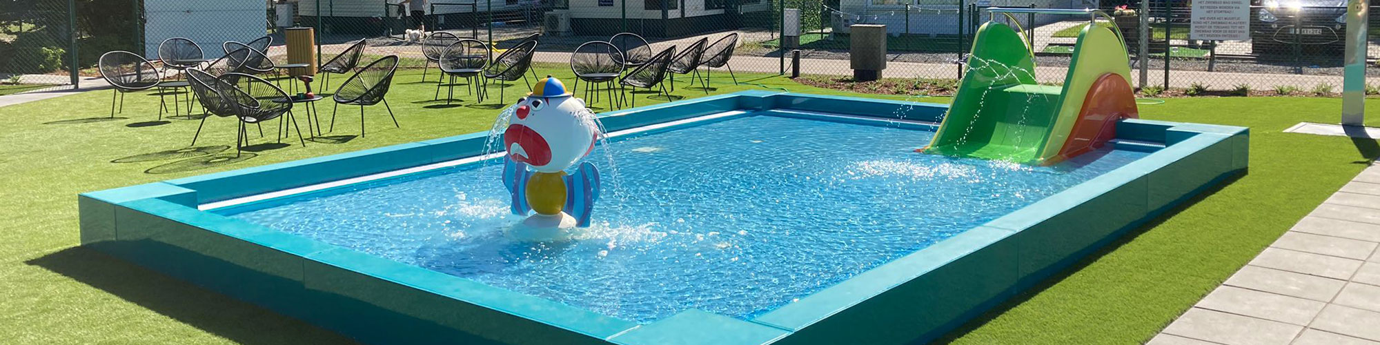 As a follow-up to its splendid Spray Park, Watergames & More has now also constructed a paddling pool at Breebos Holiday Park. This is a first, in that it is the first ever paddling pool fully designed and constructed by Watergames & More itself.