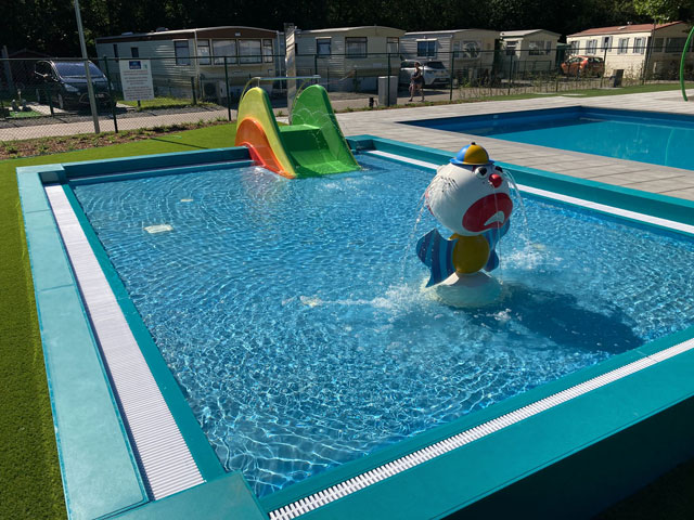 We also installed a toddler slide in the paddling pool that was entirely manufactured using our own mould, which is incidentally the only model compliant with the most recent version of the EN safety standard.