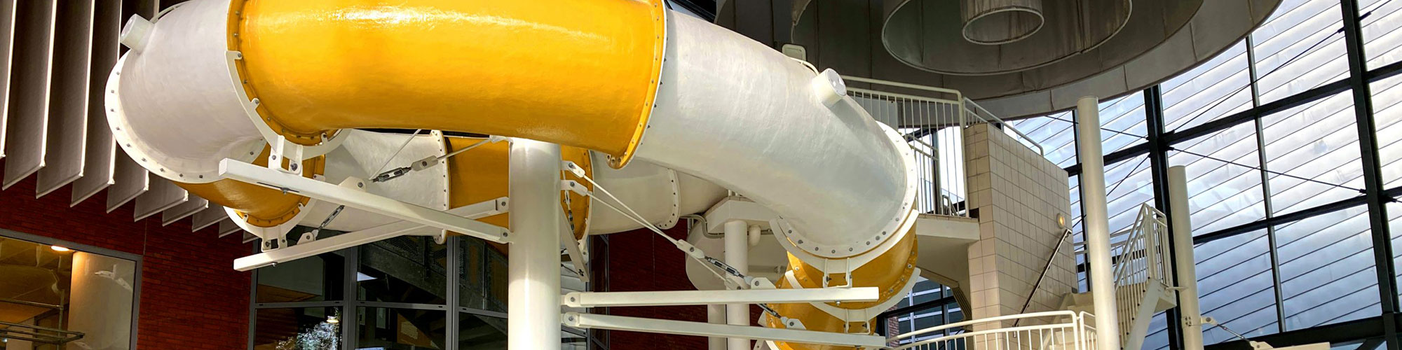 The greatest possible use was made of the existing loadbearing structure during construction of the waterslide. The new slide nevertheless follows a different course to the previous one. Furthermore, special additions were made to make the ride both more exciting and fun for visitors.