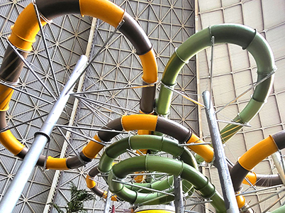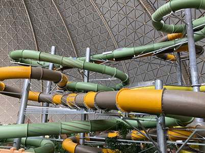 Looking for a unique slide experience? If so, the new Double Racer slide at Tropical Islands (DE) is just the thing for you! This longest double racer in the world offers a sensational ride, which enables two people to slide down parallel tubes simultaneously. The slide also won prestigious awards in the categories Europe’s Best New Waterslides, Germany’s Best New Water Slides and Europe’s Best New Water Attractions.