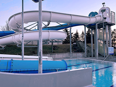 La Piscine Les Dauphins swimming pool recently underwent a large-scale renovation. This involved Watergames & More’s construction of two new waterslides with alternative courses, namely a Challenger and a SpeedRider. Part of the pool’s existing steel structure was reused in erecting the new slides.