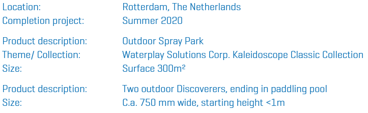 In the summer of 2020, Watergames & More constructed a Spray Park in Plaswijckpark’s Harbour Playground. The Spray Park is part of an entirely novel urban renewal plan. Over forty new water attractions have been erected in the new water playground and its adjacent terrace.