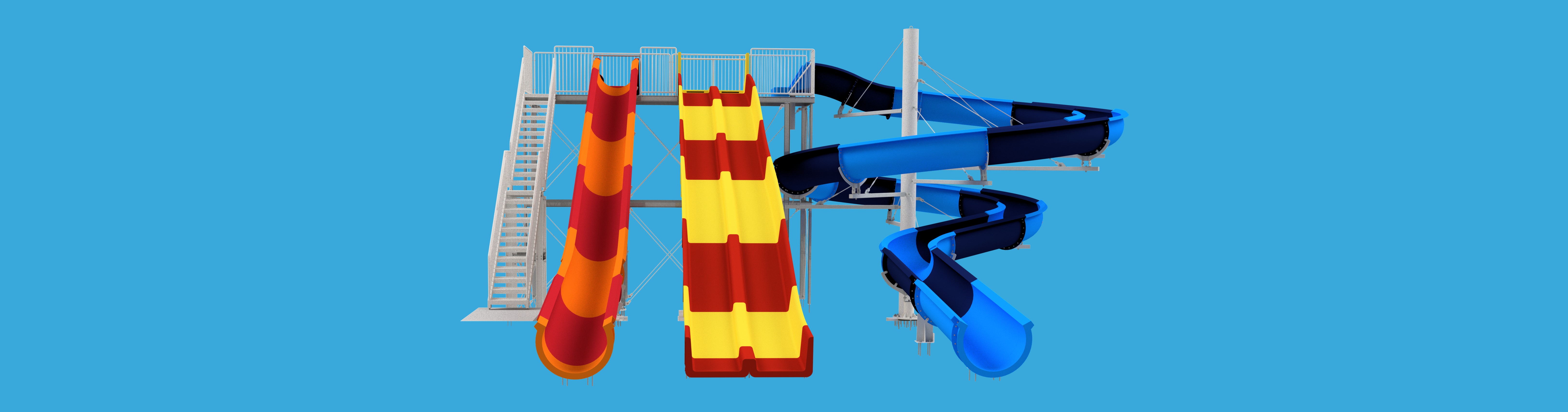 Vanaf één groot startplatform zijn alle drie de waterglijbanen toegankelijk.