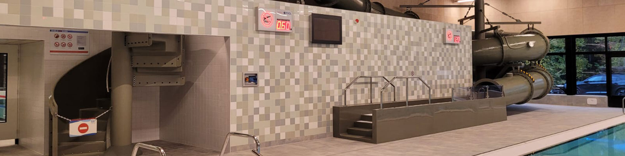 Het zwembad heeft onder andere twee grote zwembaden, een whirlpool, een peuterbad en een waterglijbaan. Watergames & More is gevraagd om voor het peuterbadje de peuterglijbaan met een spray park waterspeelelement en de waterglijbaan te realiseren.