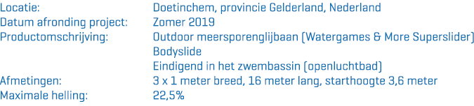 In de zomer van 2019 realiseerde Sportcentrum Rozengaarde te Doetinchem een nieuw buitenbad om ook in de hete zomermaanden bezoekers te trekken. Watergames & More realiseerde daarin een Superslider, oftewel, een meersporen waterglijbaan.